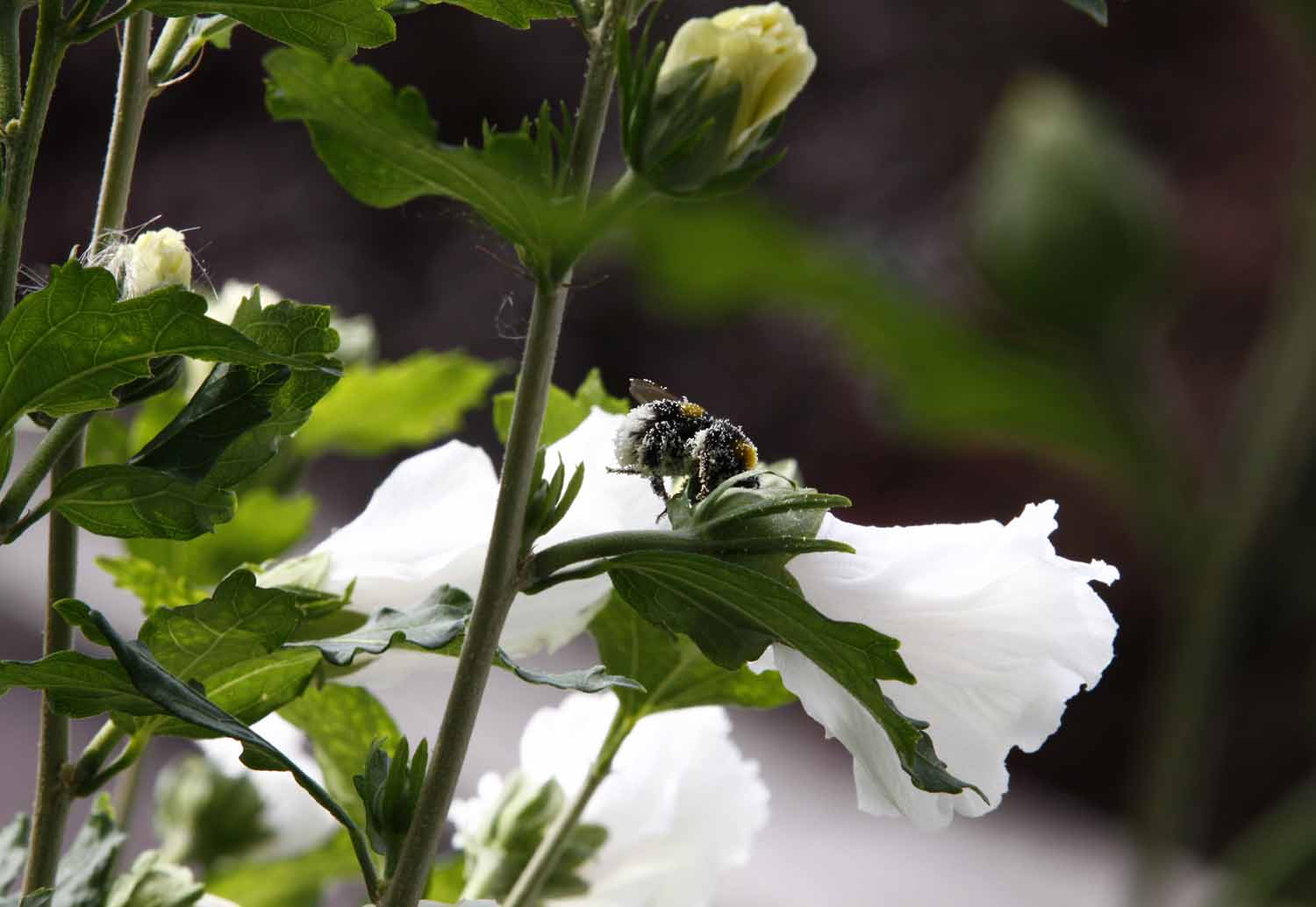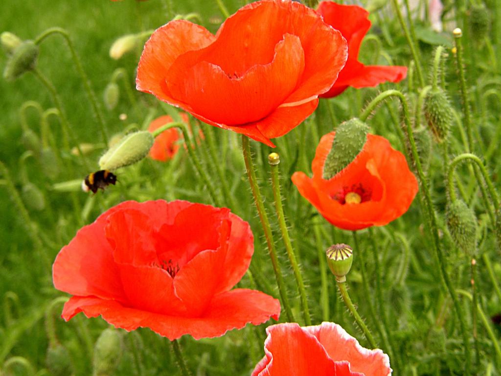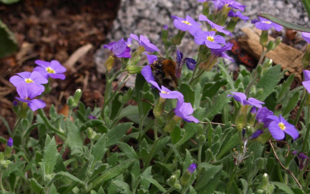 Abgebildet sind Vertreter der Rosengewächse (Rose), der Korbblütler (unbekannt, Sonnenhut, Löwenzahn, Goldrute), der Doldenblütler (Dill, Wilde Möhre), der Efeugewächse, der Hahnenfußgewächse (Waldrebe), der Mohngewächse und der Eibengewächse.