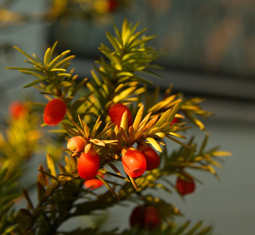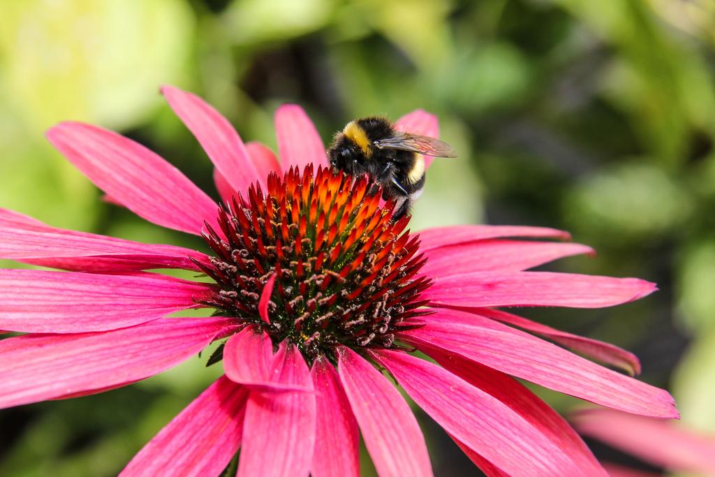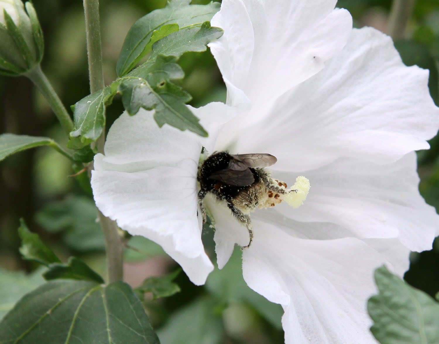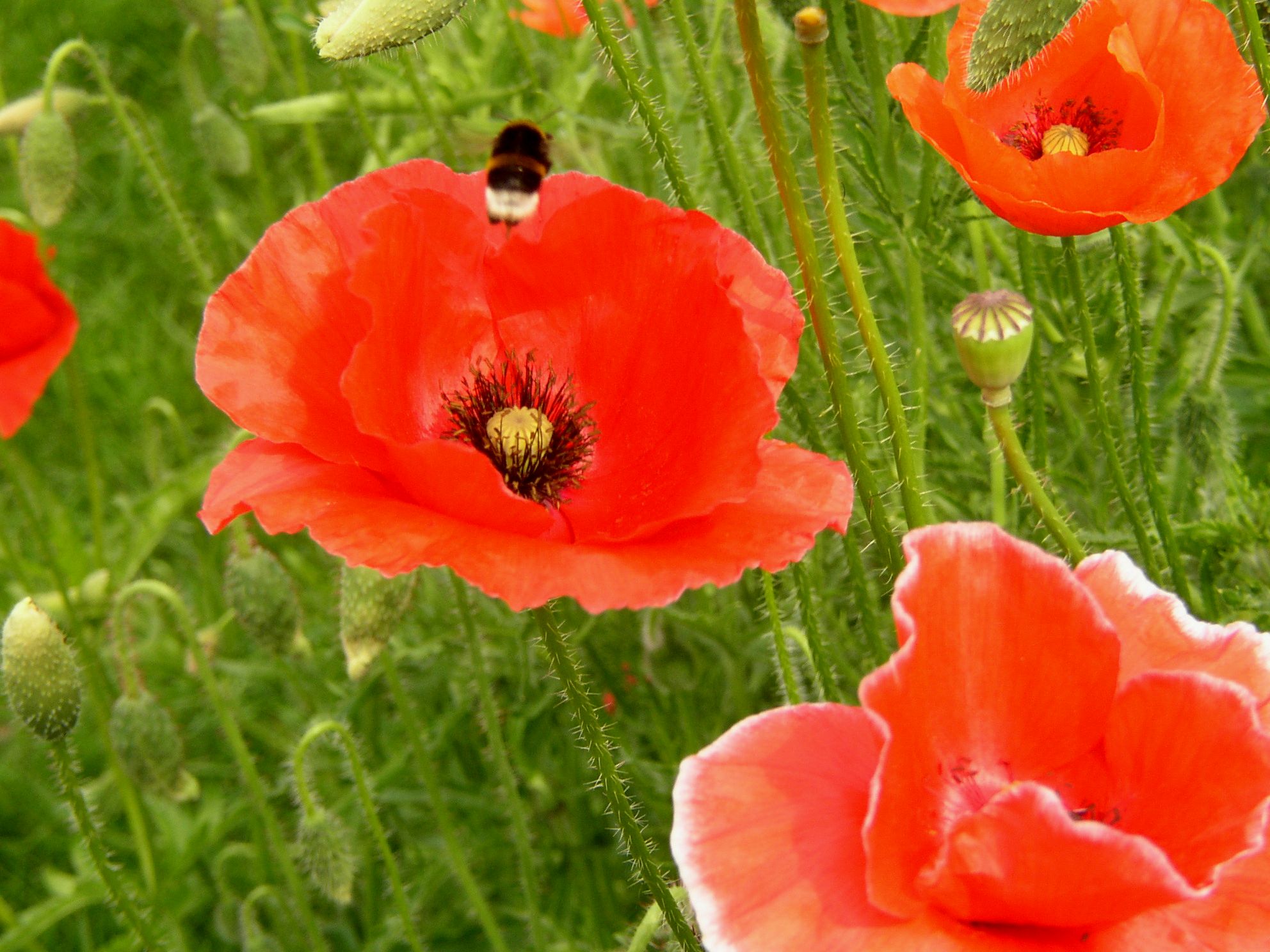 Abgebildet sind Vertreter der Rosengewächse (Rose), der Korbblütler (unbekannt, Sonnenhut, Löwenzahn, Goldrute), der Doldenblütler (Dill, Wilde Möhre), der Efeugewächse, der Hahnenfußgewächse (Waldrebe), der Mohngewächse und der Eibengewächse.