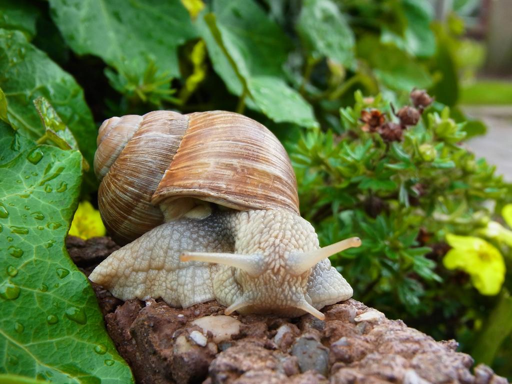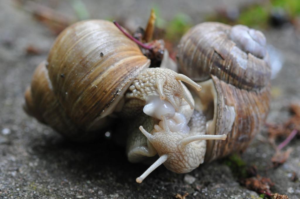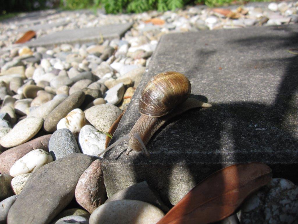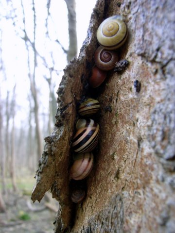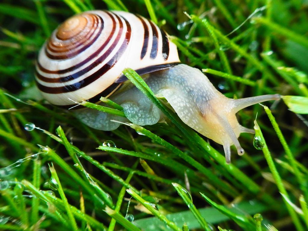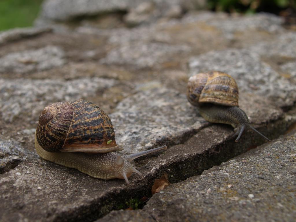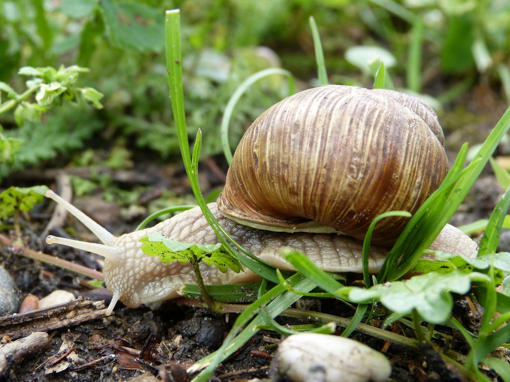 Bei den fotografierten Tieren handelt es sich um insgesamt fünf verschiedene Arten, vier davon sind wohl jedem bekannt: Weinbergschnecke (Helix pomatia), Hain-Bänderschnecke oder "Schnirkelschnecke" (Cepaea nemoralis, dunkle Mündung), die ähnliche Garten-Bänderschnecke (Cepaea hortensis mit einer hellen Mündung) und Rote Wegschnecke (Arion rufus). Zwei Fotos (Schmidt) zeigen die etwas seltenere und aus dem Süden eingewanderte Gefleckte Weinbergschnecke (Cornu aspersum).