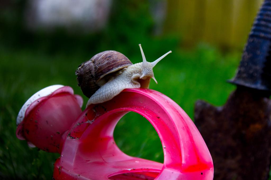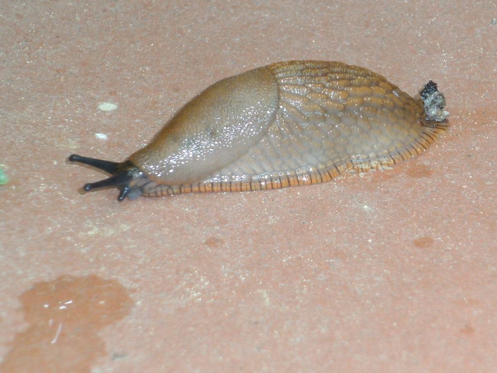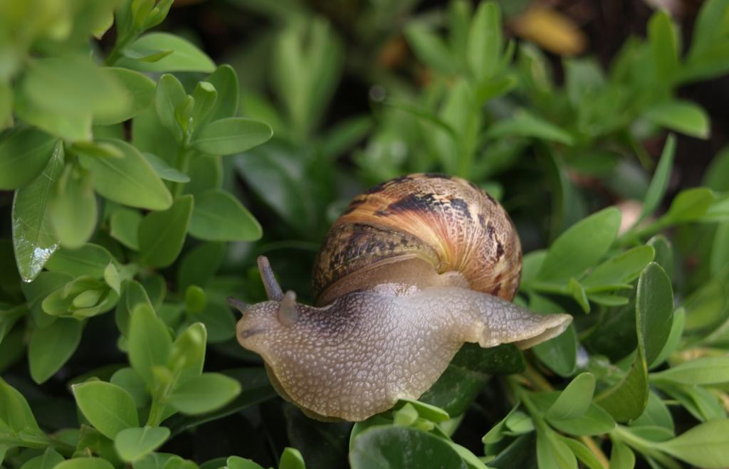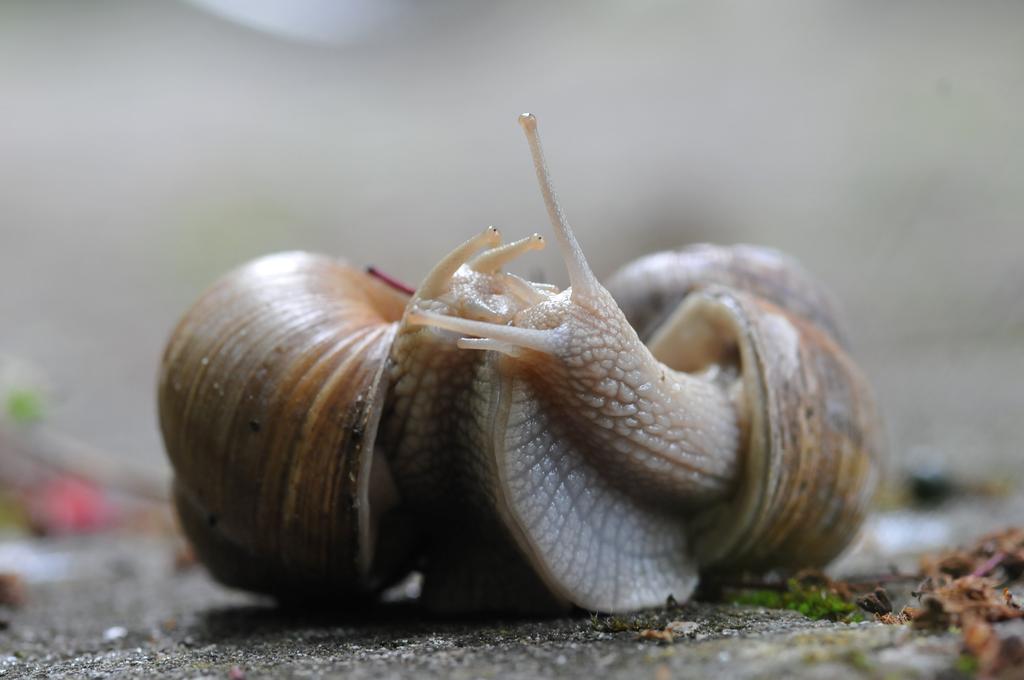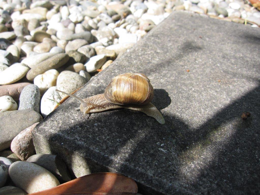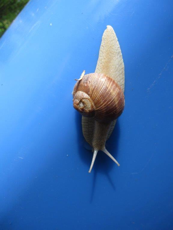 Bei den fotografierten Tieren handelt es sich um insgesamt fünf verschiedene Arten, vier davon sind wohl jedem bekannt: Weinbergschnecke (Helix pomatia), Hain-Bänderschnecke oder "Schnirkelschnecke" (Cepaea nemoralis, dunkle Mündung), die ähnliche Garten-Bänderschnecke (Cepaea hortensis mit einer hellen Mündung) und Rote Wegschnecke (Arion rufus). Zwei Fotos (Schmidt) zeigen die etwas seltenere und aus dem Süden eingewanderte Gefleckte Weinbergschnecke (Cornu aspersum).