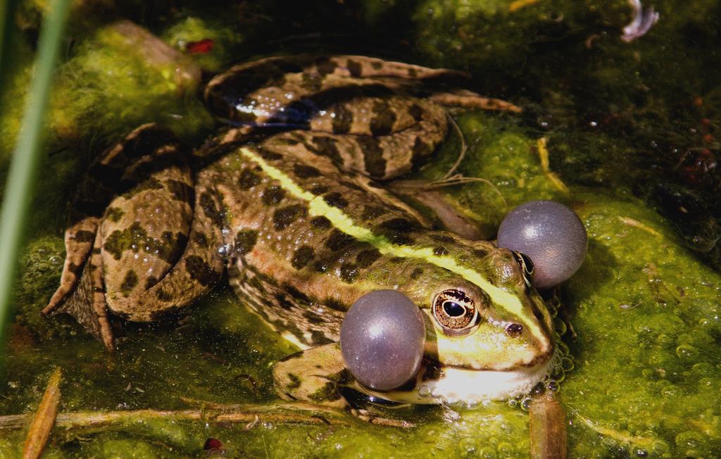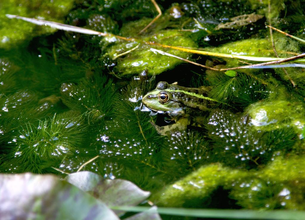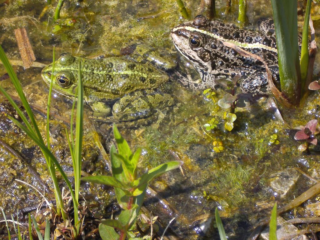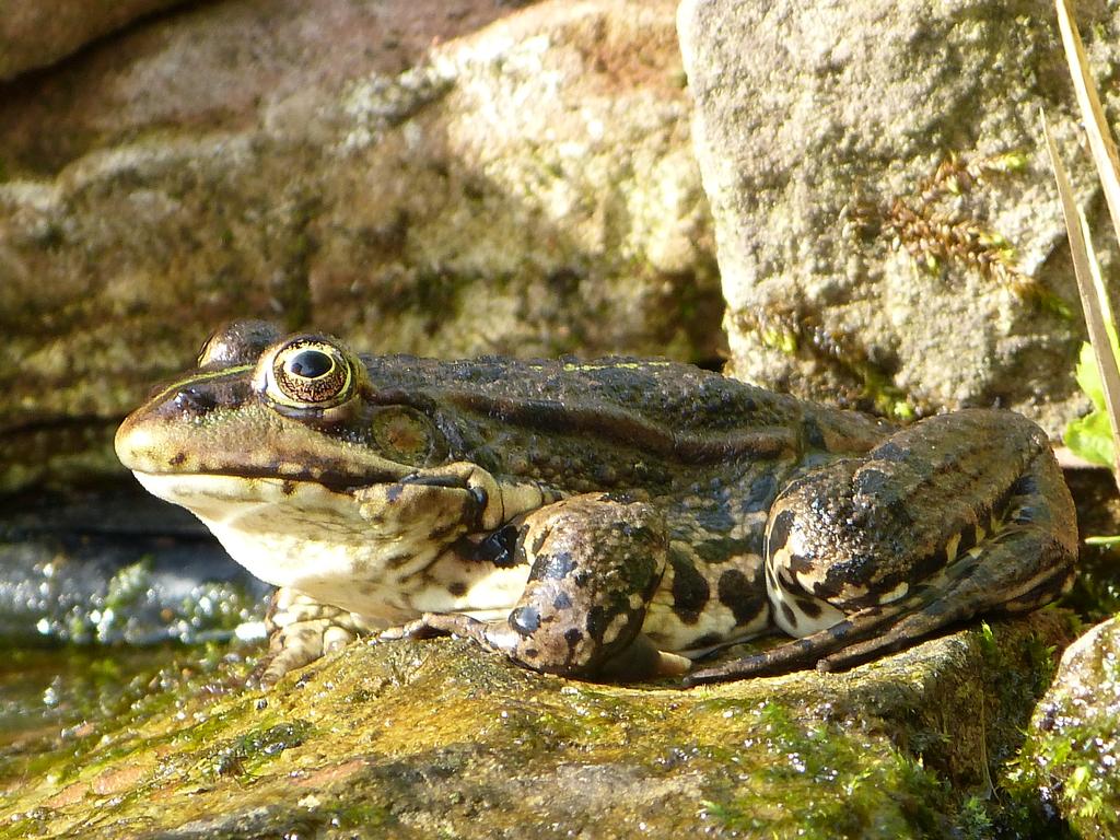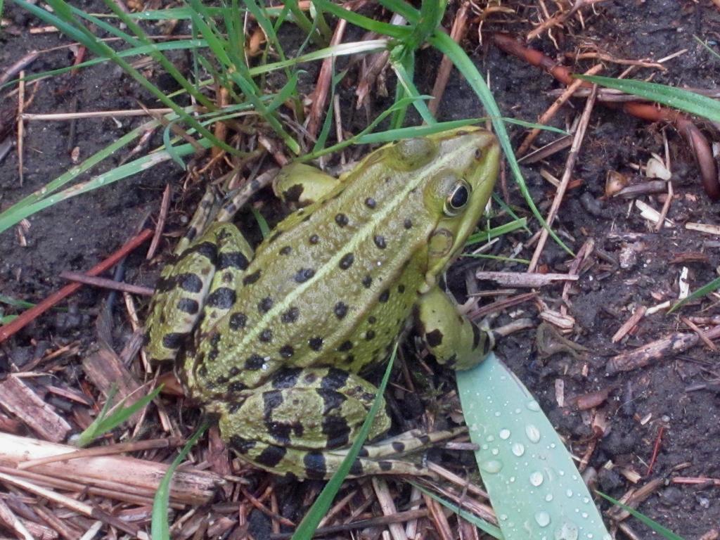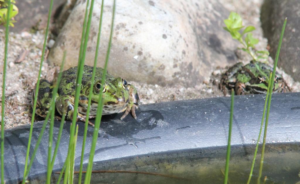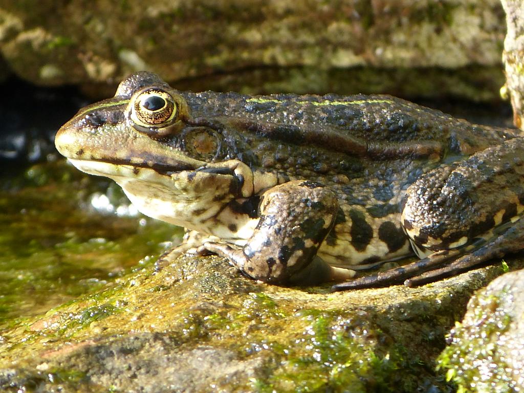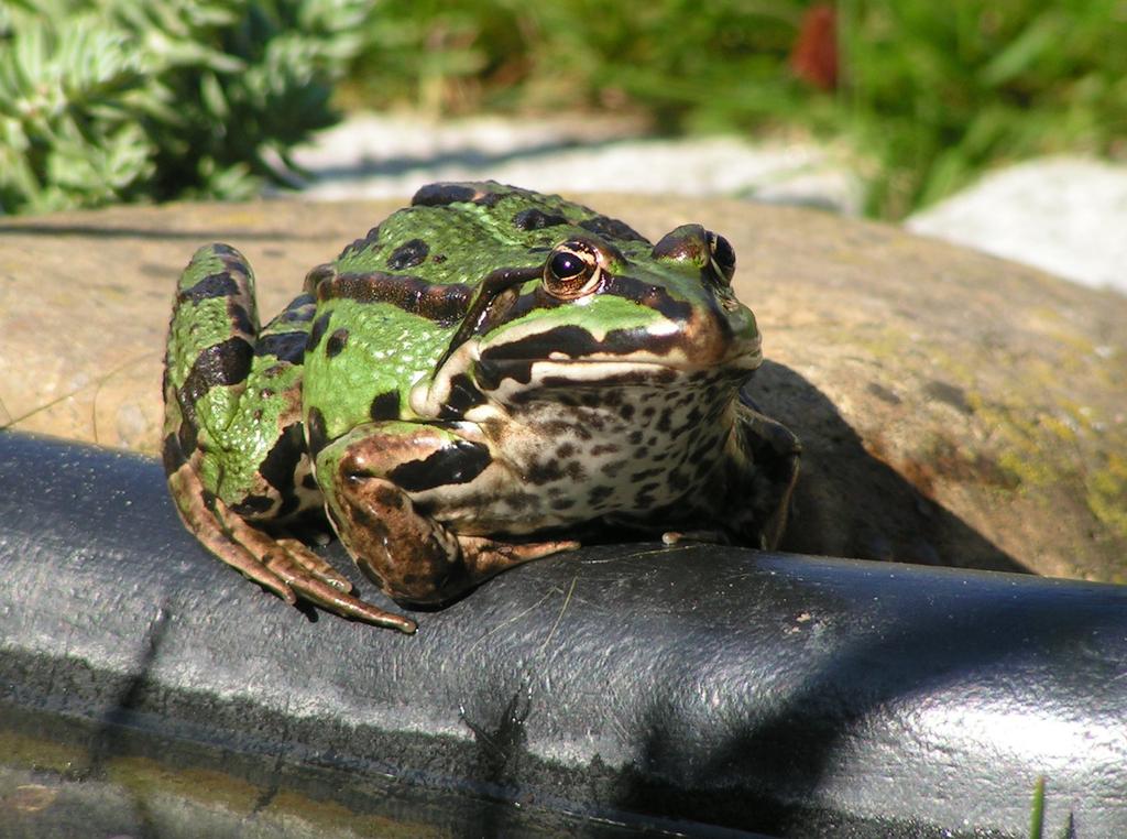 Alle Fotos zeigen vermutlich den Wasserfrosch (Rana esculenta, Färbung ziemlich variabel) in oder an Gartenteichen.
