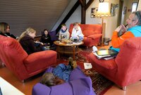 Es ist eine gemütliche Runde, die sich im ersten Stock des Jugendhauses Goddelau eingerichtet hat: Acht Jungen und Mädchen sitzen auf Sofas und Sitzsäcken im Kreis um einen niedrigen Tisch mit Büchern und Knabbereien und diskutieren mit Jugendpfleger Kai Faßnacht angeregt Tipps zum kreativen Schreiben.
