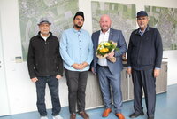 Für ihren Neujahrsgruß kamen drei Vertreter der Ahmadiyya-Muslim-Gemeinde der Baitul Aziz Moschee in Goddelau ins Riedstädter Rathaus. Dabei überreichten Shoaib Umer, Abdul Shakoor und Mumtaz Ahmad Bürgermeister Marcus Kretschmann einen Blumenstrauß.