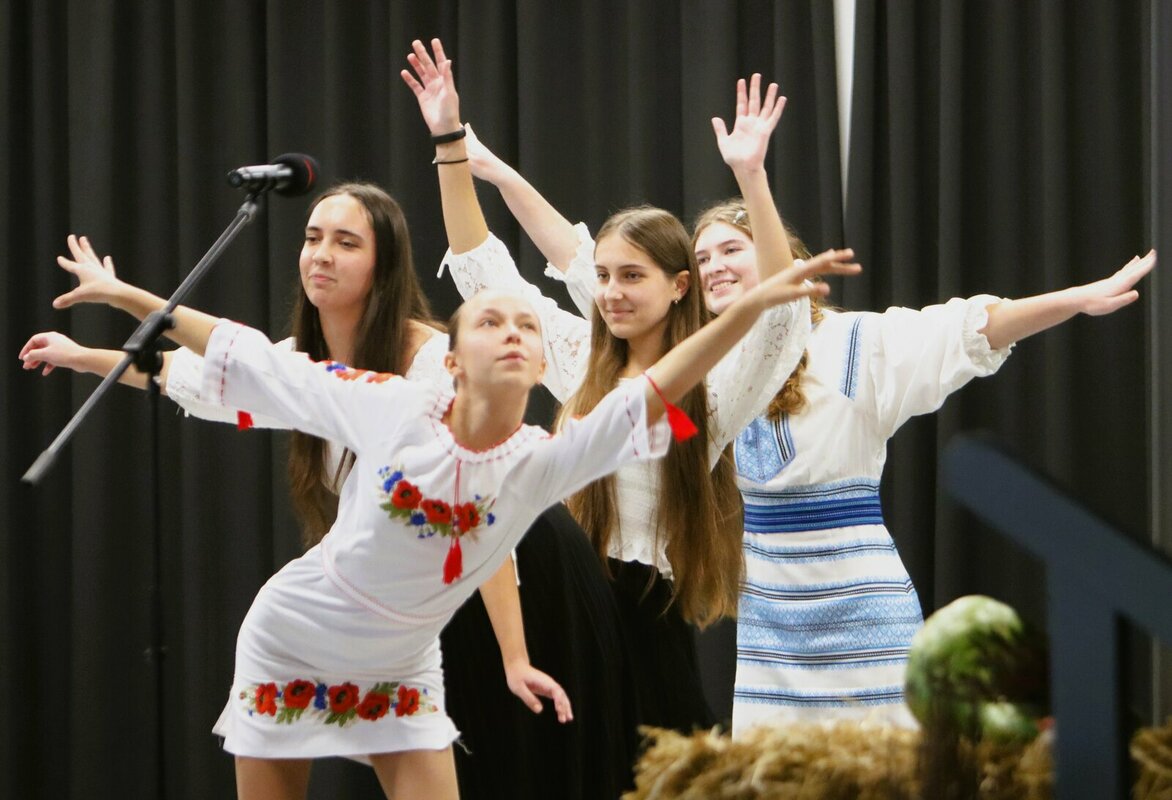 Besonders bewegte der Auftritt einer Mädchen-Gesangsgruppe aus der Ukraine. Polina Semyvolos aus Kiew (14 Jahre), die jetzt in Riedstadt-Erfelden lebt, sowie die Schwestern Uliana (14) und Marianna (15) Dotsenko aus Charkiw und Diana Muzyka (14) aus Saporischschja wollten mit Tänzen und Gesängen ihre Heimat ein wenig näher bringen.