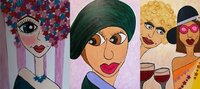 Gezeigt werden knallbunte Frauenköpfe, die mit ihren großen Kulleraugen und vollen Lippen Lebensfreude ausstrahlen. Die Künstlerin sagt dazu: „Meine Bilder sind bunt, schräg und ich liebe sie.“