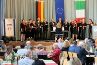 Höhepunkt des Aufenthalts war dann der Festakt mit der feierlichen Unterzeichnung der Urkunden, mit denen die Verschwisterung erneuert wurde. Unter den rund 100 Gästen waren auch viele Vereinsvertreter und Personen, die die Verschwisterung vor 30 Jahren vorangetrieben hatten, allen voran Salvatore Bucchieri. Das Programm bot einen bunten Querschnitt Riedstädter Vereine, von Auftritten der Sängervereinigung Wolfskehlen, den Ropeskippern und einer Tanzgruppe des TV Crumstadt bis zur Laienspielgruppe Leeheim, die „Dinner for One“ präsentierte.