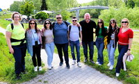 Am Feiertag stand dann bei herrlichstem Ausflugswetter eine Fahrt mit Bürgermeister Marcus Kretschmann und einem vom Bensheimerhof zur Verfügung gestellten Planwagen zu allen Festen in den Stadtteilen auf dem Programm. Auf dem Ökomarkt in Erfelden wurde die Delegation dann auch ganz offiziell von Bürgermeister Kretschmann begrüßt.