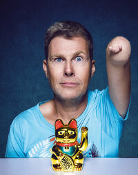 Er sagt von sich, der „einzige asymmetrische Komiker Deutschlands“ zu sein. Der Comedian Martin Fromme kommt am Samstag, 27. April um 18 Uhr mit seinem Programm „Glückliches Händchen“ ins Volkshaus Crumstadt, Friedrich-Ebert-Straße 21. In der Kooperationsveranstaltung des Kulturbüros der Büchnerstadt Riedstadt mit der städtischen Behindertenbeauftragten Marina Wohner, dem SV Crumstadt, den VdK-Ortsverbänden und weiteren Partnern klärt der „anderthalbarmige Komiker“ so Fragen wie „bin ich wirklich der Erfinder der chinesischen Winkelkatze?“, oder „können Rollstuhlfahrer auch richtige Rampensäue sein?“