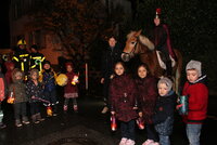 Das gab staunende Kinderaugen: Einen Laternenumzug mit einem richtigen Sankt Martin hoch zu Ross erlebten jetzt die Kinder der Kita Büchnerstraße. Als mittelalterlicher Ritter mit prächtigem Samtumhang verkleidet ritt Melanie Schulz auf Therapiepferd Michel vom Burghof Brodhecker vor der Kinderschar mit ihren selbstgebastelten Laternen.