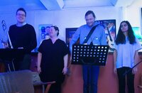 Ab etwa 21:30 Uhr startet dann die „Blaue Stunde“ mit Live-Musik der hauseigenen Band. Der Eintritt ist frei; eine Anmeldung nicht erforderlich.