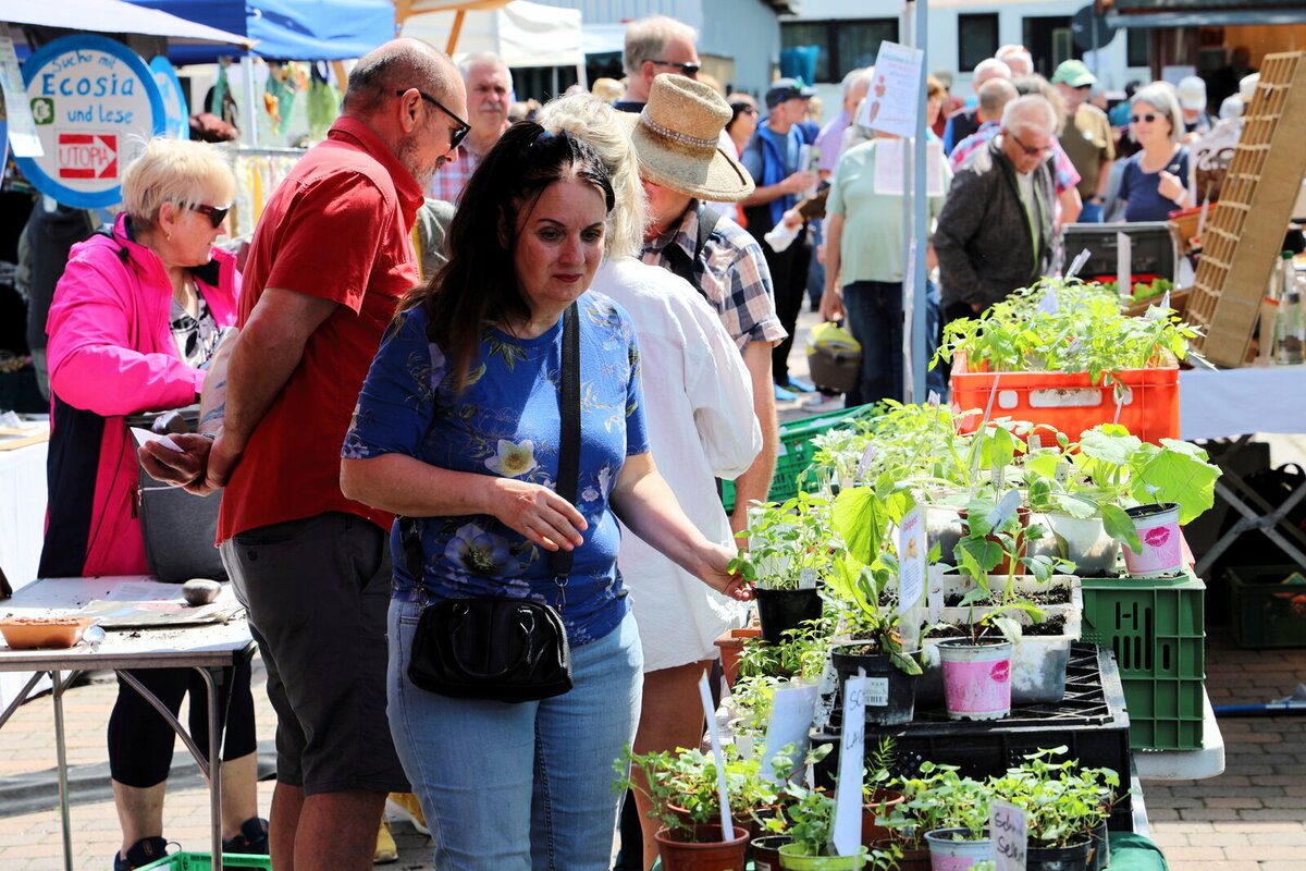 Der Riedstädter Ökomarkt auf dem Richthofenplatz in Erfelden ist seit vielen Jahren eine gesetzte Größe an Christi Himmelfahrt, das war auch in seiner 32. Auflage so. Bei herrlichstem Ausflugswetter schlenderten zahlreiche Menschen über den Markt, um in entspannter Atmosphäre sich an den zahlreichen Ständen Informationen und Beratung zu Umwelt- und Klimaschutz zu holen und im reichen Angebot unterschiedlichster Produkte zu stöbern.
