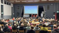 Mit 10-minütiger Verspätung startete der Informationsabend zum 1. Bauabschnitt der notwendigen Sanierung der Ortsdurchfahrt in Leeheim. Der Andrang war trotz regnerischer Bedingungen sehr groß. So wurde gewartet, bis auch der letzte Teilnehmer einen Platz gefunden hatte.