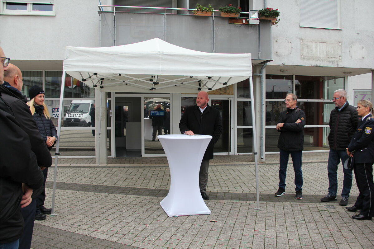 Vorher war dort ein Wettbüro untergebracht. Nun ist in die Räume direkt neben dem Riedstädter Rathaus die Stadtpolizei gezogen. Mit Blick auf das Sicherheitsbedürfnis der Bevölkerung betonte Bürgermeister Marcus Kretschmann bei der offiziellen Eröffnung der Räumlichkeiten: „Es ist gut, dass unsere Stadtpolizei nun sichtbarer ist und die beiden Schutzfrauen vor Ort hier gleich um die Ecke sind. Wir sind stolz und froh, dass wir sie hier haben.“