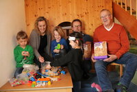 Elian, Ela und Leon haben ihre Freude an den beiden großen Tüten, die prall gefüllt sind mit Schrauben, Platten, Rädern und weiterem Konstruktionsmaterial, sowie den beiden dazugehörigen Kompakt-Schraubern. Die drei Kinder der Kita Feerwalu in Riedstadt-Leeheim dürfen die frisch eingetroffenen Spielsachen auspacken, bevor sie dann in den Bestand des Bauzimmers übergehen.