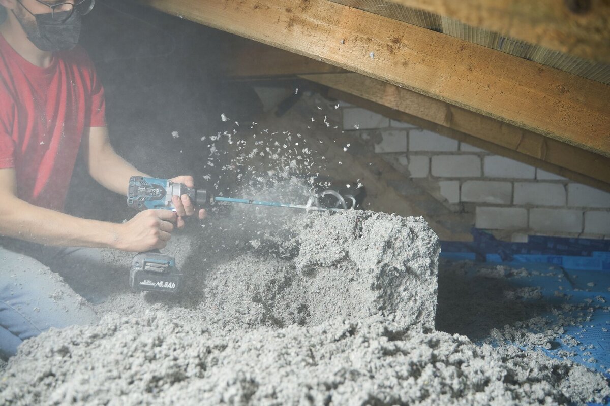 Marco Arras möchte sein Haus in Leeheim klimafreundlich sanieren. Nicht alles auf einmal und möglichst kostengünstig. Mit diesem Wunsch kam er auf Sanierungsmanager Krick zu, der einen gemeinsamen Workshop zum Thema Dachbodendämmung vorschlug. Die Idee: mit Hilfe von Freiwilligen wird der Dachboden mit Zellulose gedämmt, ein Teil davon soll auch begehbar sein. Die Teilnehmenden lernen, wie es geht und können die Dämmung dann bei sich zu Hause umsetzen.