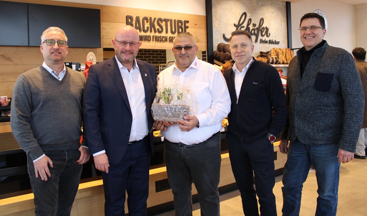 Im Gespräch mit Immobilienprojektentwickler Sebastian Sinn und Expansionsmanager Argyris Mylonas von „Schäfer Dein Bäcker“ erinnerte der Bürgermeister an den Zustand im Gewerbegebiet Goddelau Süd-West bei seinem Amtsantritt vor neun Jahren mit vielen Leerständen. Mittlerweile sei eines der wichtigsten Einfallstore nach Riedstadt deutlich aufgewertet durch den Umzug des Bauhofs an diese Stelle und die neu entstandene Kita An der Riedbahn. „Mit der Schäfer-Filiale ist es hier jetzt noch schöner“, erklärte der Verwaltungschef.