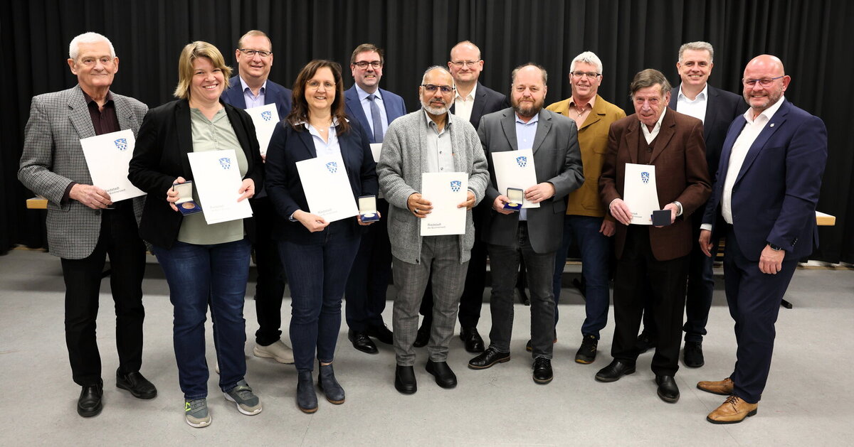 Die Ehrenplakette in Bronze für mindestens 15 Jahre kommunalpolitisches Engagement erhielten Guido Funk (CDU), Katja Kamenik (SPD), Ahmad Muzaffar Mahmood (Ausländerbeirat) und Dieter Frey (FFH). Mit der Ehrenplakette in Silber für mindestens 20 Jahre in kommunalpolitischen Gremien wurden Melanie Dörr und Matthias Lachmann (beide CDU) ausgezeichnet.