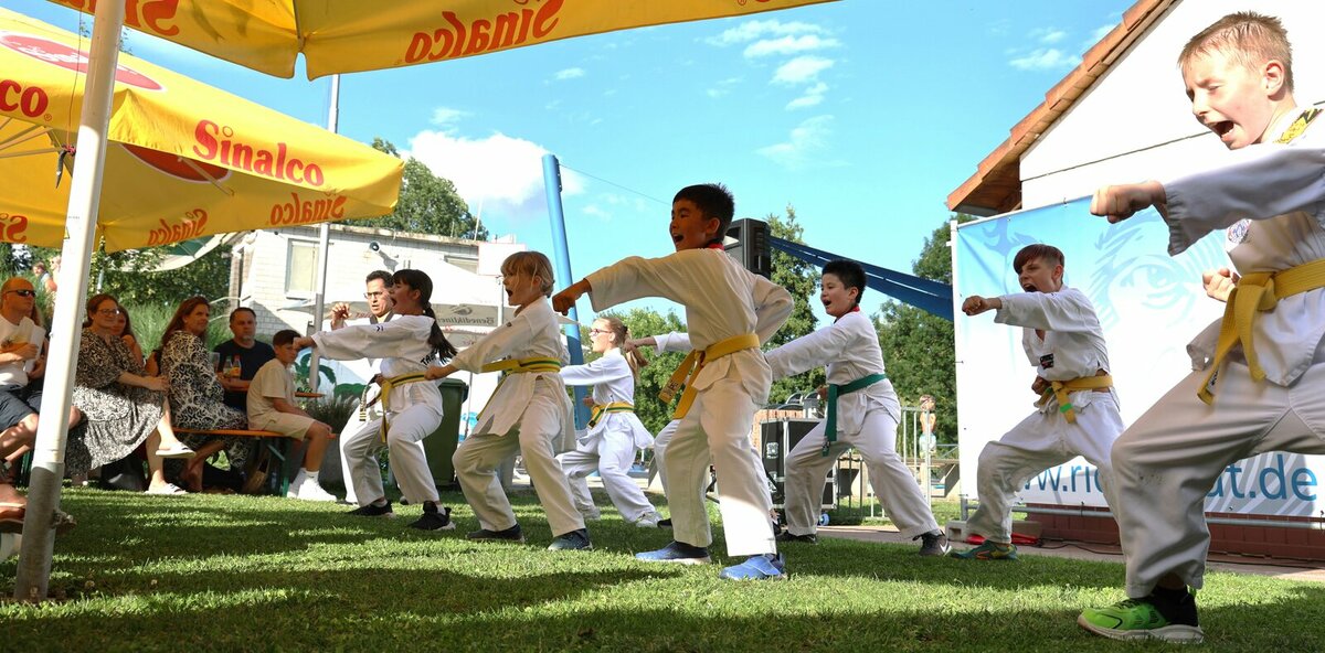 Zwischendurch begeisterte die Abteilung Taekwondo des TSV Goddelau mit einer Vorführung, wie das Taekwondo-Training der Kindergruppe im TSV Goddelau aussieht.