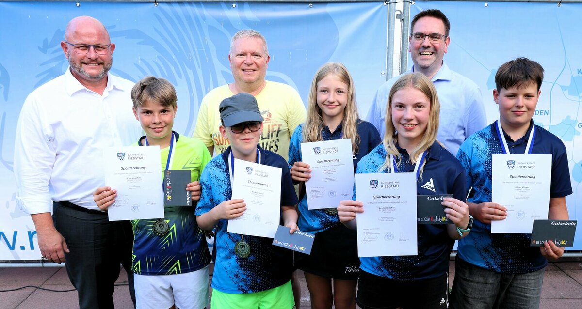 Von 87 gemeldeten Sportlerinnen und Sportlern konnten Bürgermeister Marcus Kretschmann und Stadtverordnetenvorsteher Guido Funk rund 50 Kinder und Jugendliche persönlich Urkunden, Medaillen und Büchergutscheine überreichen, die übrigen erhalten ihre Auszeichnungen durch ihre Vereine.
