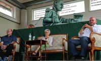 Es gibt viele kreative Ansätze in der Büchnerstadt Riedstadt und der Friedrich-Ludwig-Weidig-Stadt Butzbach, das Erbe der beiden Kämpfer des Vormärz für soziale und demokratische Verhältnisse weiterzuführen. Dabei kooperieren die beiden Städte auch und inspirieren sich gegenseitig. Das ist das Ergebnis eines Podiumsgesprächs, das der Butzbacher Bürgermeister Michael Merle und Riedstadts Bürgermeister Marcus Kretschmann am vorletzten Tag des Büchnerland-Festivals in der Büchnerscheune führten. Unter dem Titel „Büchner, Weidig und die Demokratie“ stellten sie gegenwärtige und zukünftige Projekte vor. Moderiert wurde das Gespräch von Riedstadts Pressesprecherin Anke Mosch.