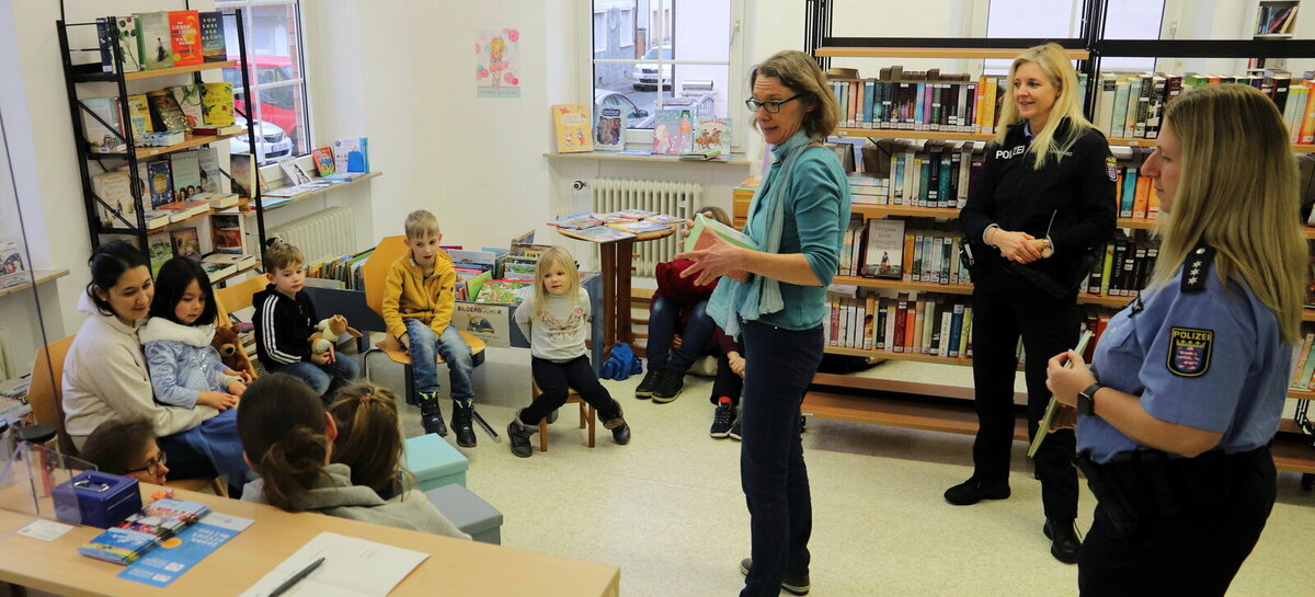 Zu einer ungewöhnlichen Vorlesestunde hatte kürzlich die Leiterin der städtischen Bücherei Anja Stark in die Bücherei Leeheim eingeladen: Gemeinsam mit den beiden Schutzfrauen vor Ort Katja Vagi-Mager und Caroline Fernandez gingen die begeisterten Kinder auf Verbrecherjagd.