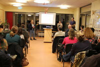 Das Interesse an der Vorstellung des Projekts ist riesig: Über 50 Mütter und Väter sind der Einladung gefolgt, um zu erfahren, was genau in den nächsten Monaten in der Kita und dem Seniorenheim geplant ist. Zur Auftaktveranstaltung gekommen sind auch Bürgermeister Marcus Kretschmann und der Fachbereichsleiter Kinder, Jugend und Soziales Rick Hölzer. In einer kurzen Ansprache bedankt sich der Verwaltungschef bei Familie Heil, Betreiber des Seniorenhauses am Park, dass sie die Kooperation mit der Kita eingegangen ist und bei der Kitaleitung für die engagierte Unterstützung des Projekts.