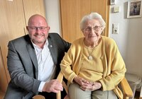 Einen ganz besonderen Geburtstagsbesuch konnte Bürgermeister Marcus Kretschmann kürzlich machen: Er besuchte Elfriede Behrendt an ihrem 101. Geburtstag im Riedstädter Stadtteil Goddelau und überbrachte im Namen der Büchnerstadt die herzlichsten Glückwunsche zu diesem ungewöhnlichen Geburtstag. Angeregt unterhielt er sich mit der rüstigen Jubilarin und ließ sich aus ihrem langen Leben erzählen.