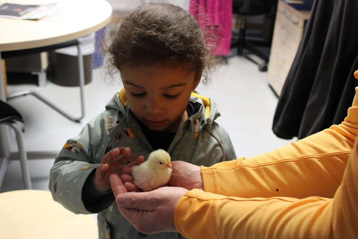 Gespannt verfolgte die ganze Kita-Familie, wie es mit den Eiern weiterging: Nach drei Tagen entstand im ersten Ei erst ein Loch und schlüpfte dann ein Küken.
