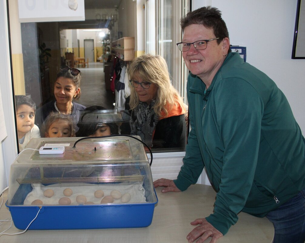 Passend zu Ostern gab es in der Kita Kinderland ein ganz besonderes Projekt mit dem Geflügelzuchtverein (GZV) Goddelau: Unter den staunenden Augen der Kitakinder brachte Michaela Schwäch vom GZV einen Brutkasten mit verschieden großen Eiern vorbei und stellte ihn im Büro der Kita auf.