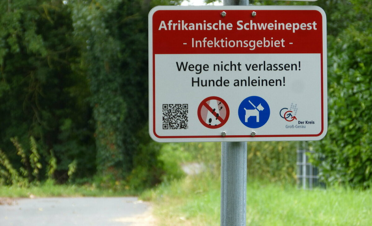 Zur Bekämpfung der für Wild- und Hausschweine hoch ansteckenden Afrikanischen Schweinepest hat der Kreis Groß-Gerau eine Allgemeinverfügung erlassen, die wegen des rasanten Ausbruchsgeschehens seit Mitte Juni bereits mehrfach angepasst werden musste. Demnach gilt für den gesamten Kreis Groß-Gerau eine allgemeine Leinenpflicht für Hunde im gesamten öffentlichen Straßenraum, eine Hundeleine darf nicht länger als fünf Meter sein. Des Weiteren dürfen öffentliche Wege nicht verlassen werden.