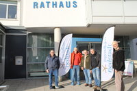 Das Linux-Café war ein solcher Erfolg, dass das Team das Angebot auch im nächsten Jahr fortführen möchte. Und es fand einen solchen Zuspruch, dass die Spendenbox gut gefüllt wurde. Das gespendete Geld sollte dem Jugendbüro der Büchnerstadt Riedstadt zu Gute kommen. Das hat davon mobile Fahnen mit dem Schriftzug „jugendbüro riedstadt“ beschafft. Diese sogenannten Beachflags (engl. „Strandfahnen“) hatten sich die Mitarbeitenden des Jugendbüros schon länger gewünscht, um bei Veranstaltungen wie dem großen Riedstädter Kinderfest sichtbarer zu sein, erklärte Jugendpfleger Heiko Wambold bei der Übergabe und bedankte sich herzlich bei Christian Lorenz, Peter Philipp, Michael Klosterhalfen und Marc Gaillard vom Linux-Café für die Unterstützung.