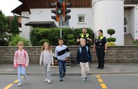 Seit Freitag, 29. August steht die Ampel. Bereits am darauffolgenden Mittwoch, 3. September, sind Yildirim und Laux in die Grundschule gekommen, um klassenweise mit den ersten und zweiten Klassen den richtigen Umgang mit der Ampel zu üben und dabei auch gleich noch einmal den Weg von der Schule bis zur Ampel und zurück zu trainieren. Die 2a macht den Anfang. „Wir haben in der Klasse viele Kinder, die direkt am Kammerhofweg oder in der Nähe wohnen und über diese Straße zur Schule gehen“, berichtet Klassenlehrerin Hirsch. Grüppchenweise üben die Kinder, den Schalter an der Ampel zu drücken, abzuwarten bis sie Grün haben, kurz zu schauen, ob die Autofahrer auch wirklich halten und dann zügig die Straße zu queren. „Wenn es rot wird und ihr schon in der Mitte der Straße seid, geht ihr trotzdem weiter“, erklärt Laux.