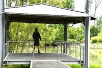 Seit einigen Tagen ist der Riedstädter Stadtteil Erfelden um eine kleine Sehenswürdigkeit reicher. Auf Initiative von BüchnerFindetStatt und mit Genehmigung des Gewerbevereins Riedstadt und der Büchnerstadt wurde eine Skulptur am Geländer der Aussichtsplattform an der Martin-Roth-Brücke zum Kühkopf errichtet.